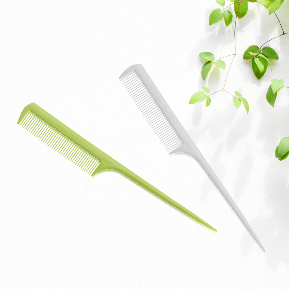 An eco-friendly comb that uses plant-derived material (castor oil) instead of petroleum, the traditional raw material for plastics.