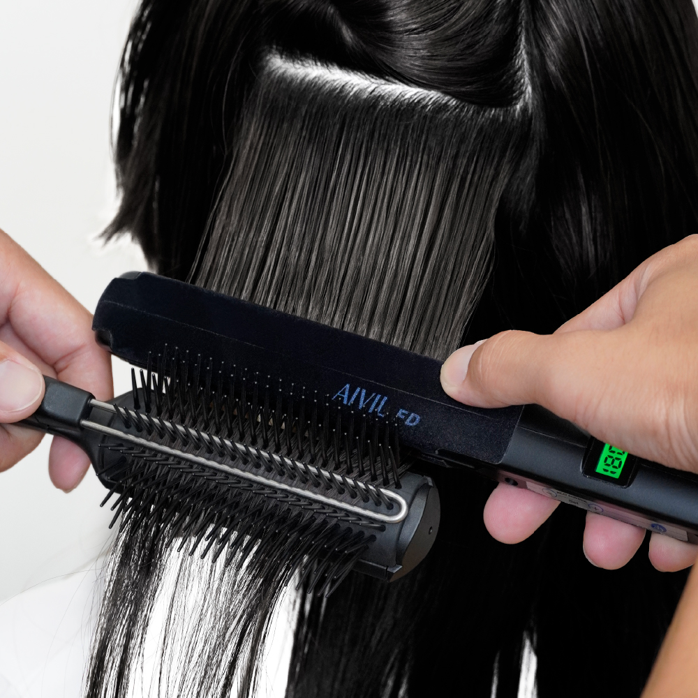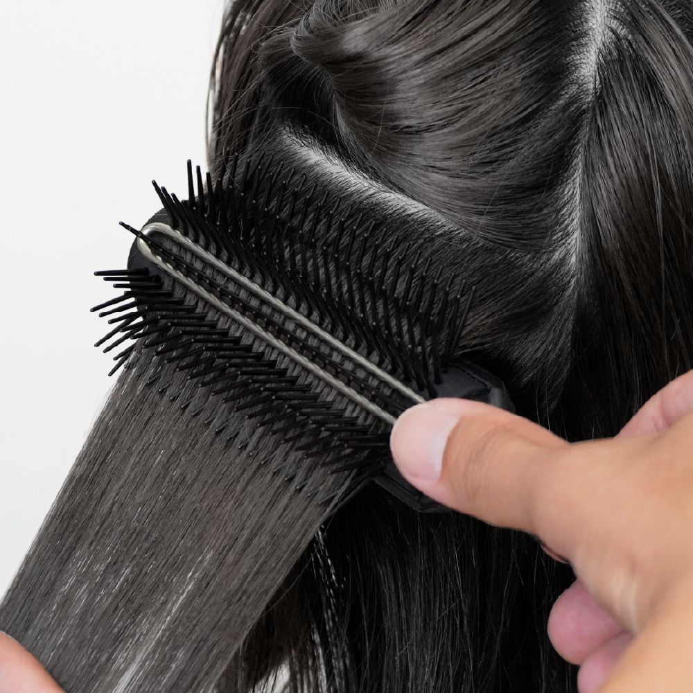 The greatest feature of the Dual Hold series is the unique stainless steel pin that firmly “clamps” the hair. This is the “secret” that elevates the blow-dry finish. It captures the hair as a “panel”—which was difficult with conventional brushes and combs—allowing for the application of uniform and strong tension.