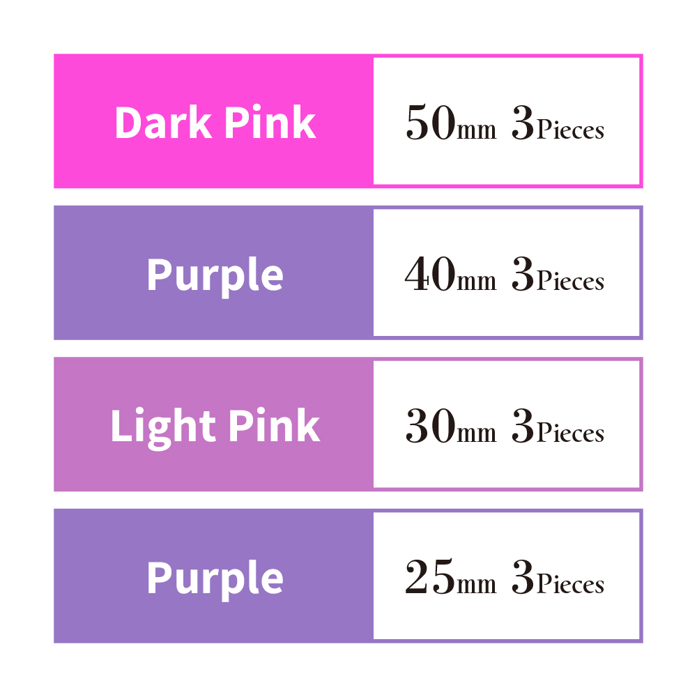 | Size | Total Length:105mm Dark Pink:50mm Purple:40mm Light Pink:30mm Purple:25mm |