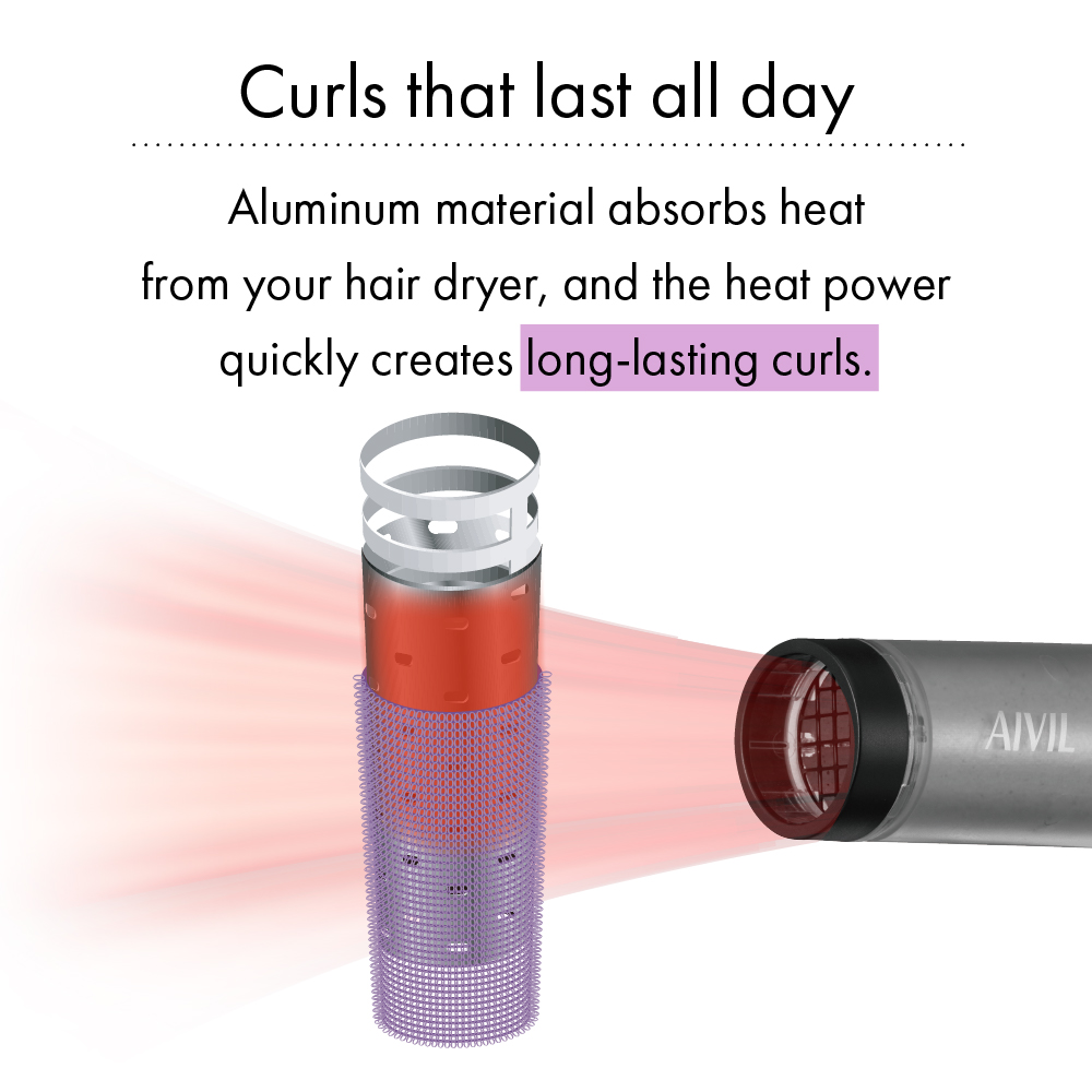 The aluminum part absorbs heat from the hair dryer, helping you create long-lasting curls quickly.