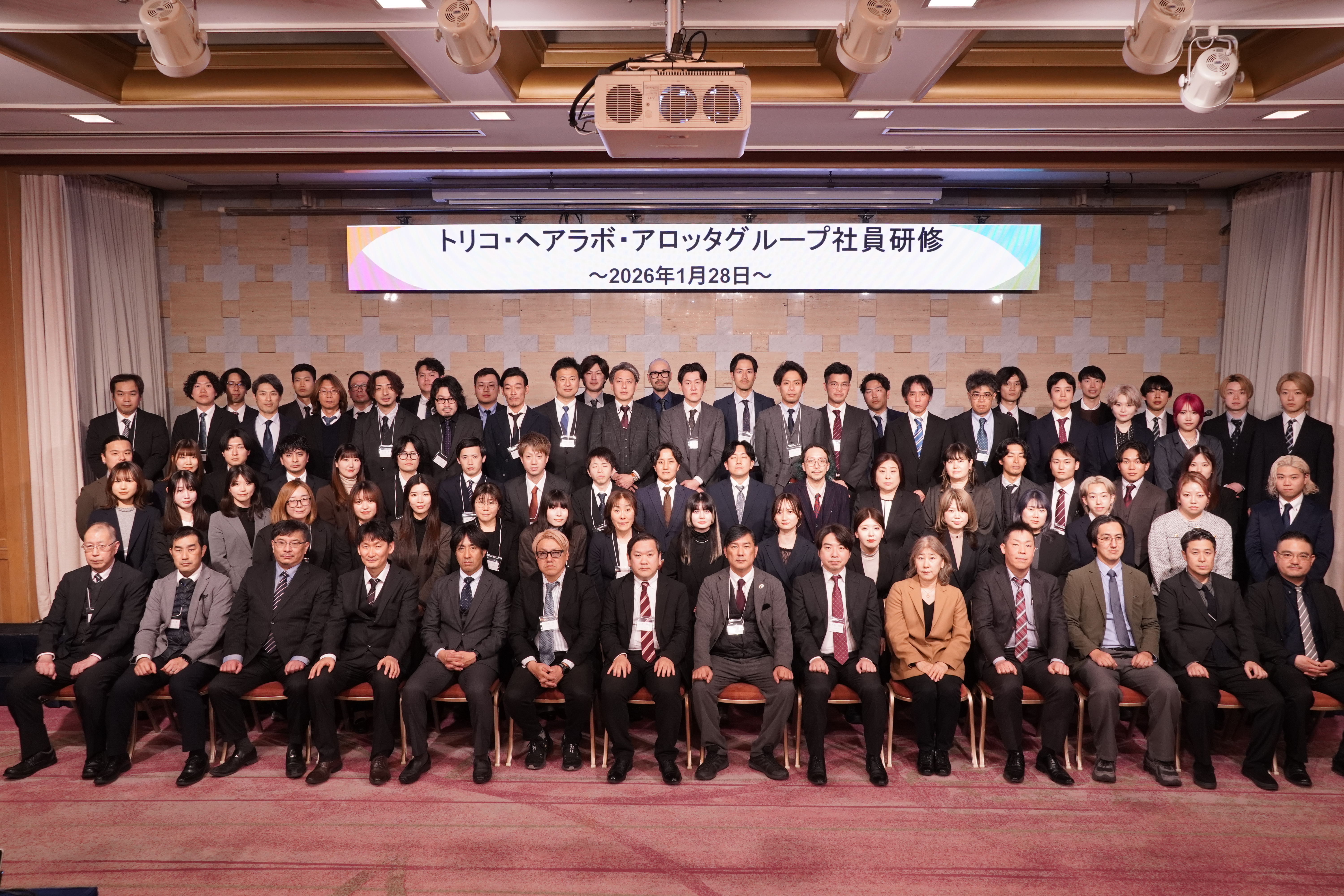 トリコ・ヘアラボ・アロッタグループは、合同研修を2026年1月28 日(水)と29日(木)の両日、鹿児島市で開催しました。社員ら81人が参加しました。研修の冒頭、 村島有治グループ代表は昨年を振り返り、三重工場の移転やヘアラボHCのスタート、ファイブ名古屋・池袋東口店のオープンや第1期横断中堅社員プロジェクト研修の発表とそれに伴うグループバリューの決定、基幹システムの統合など土台を着実に築いたことを報告。合わせて、今後のグループ全体の売り上げ目標を2029年に60億円、2035年に100億円とすることを発表しました。